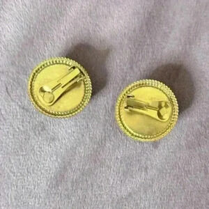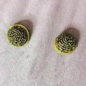 Vintage beaded snap back earrings with gold colored outer rim and brown beads. These are pre owned and in good condition. See photos for details and measurements.