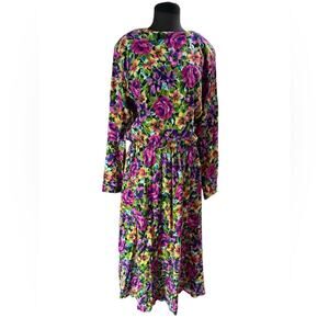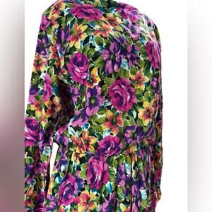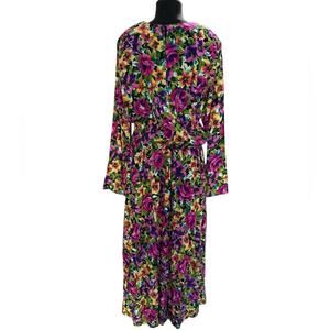 Vtg Colorful Floral Modest Bloomcore Maxi Dress L Feminine Boho Romantic Garden