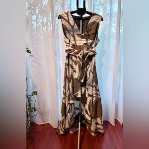 NWT Mae Otti Stylish Leaf Print High-Low Dress Tropical V-Neck Resort Size XL