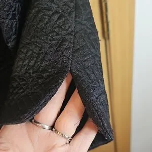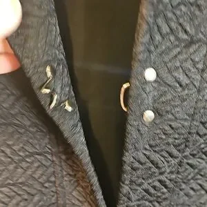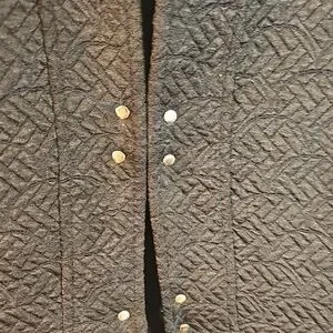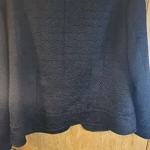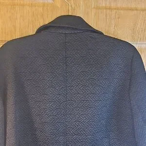 Sophisticated black blazer with a textured pattern. Features a classic collar and stylish button accents. Ideal for any occasion.
