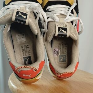 Vibrant Puma sneakers with a multicolor design. Features black, red, blue, and yellow accents. Comfortable and stylish.