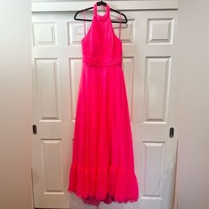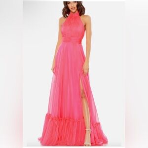 Mac Duggal High Neck Tiered Chiffon Halter Pink Gown 12 #67816