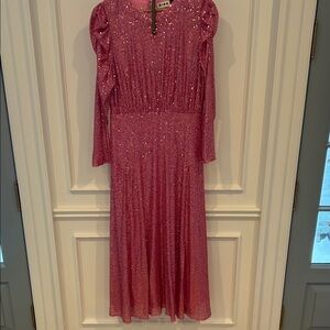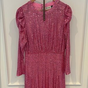 Elegant pink dress with sparkling details. Perfect for formal events. Crafted by RIXO for a standout look. Worn once to a Valentine’s Day party and dry cleaned.