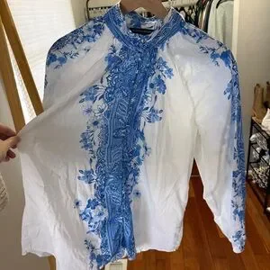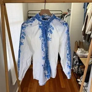 Boston Proper Wildflowers Print Peasant Shirt 100% cotton
