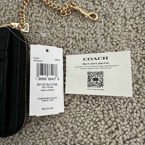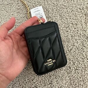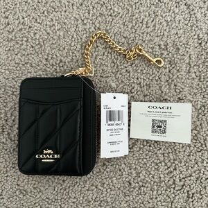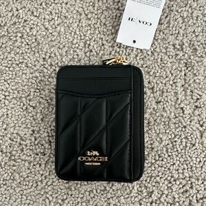 NWT Coach Zip Card Case With Quilting CZ467 Gold/Black