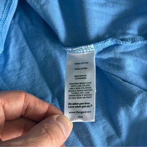 Life Is Good Crusher T-Shirt Falling Gnome Leaves Long Sleeve Womens Medium Blue