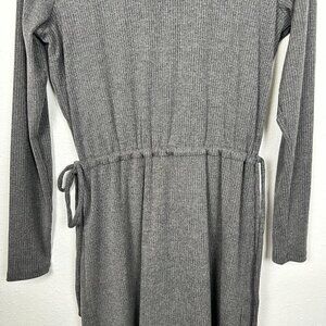 Winter, Fall, Knit, Ribbed Knit dress, crew neck, tie waist, long sleeve, stretchy, comfortable, grey