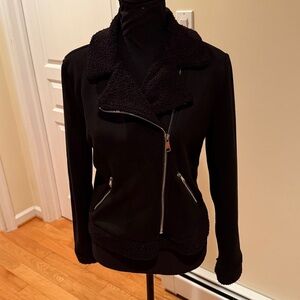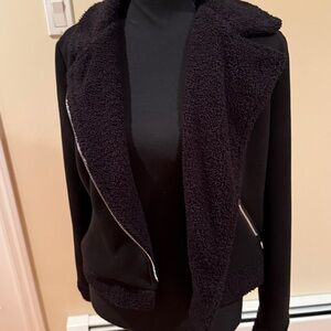 bebe Beautiful Black Teddy Jacket with Gold Zipper and Pockets,soft and comfy