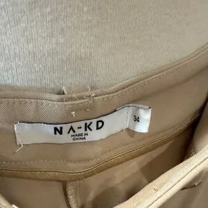 NA-KD Tan Pleated Trousers 34