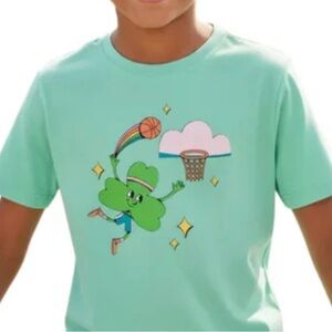 Super cute Cat & Jack short sleeve graphic t-shirt in a fresh light green color! Features a fun shamrock playing basketball—perfect for everyday wear, school, or St. Patrick’s Day vibes.