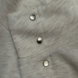 Anset jacket. Elegant cream snap down with a high neck and tie waist. So soft and has a good weight. Light pilling from normal wear. No flaws!