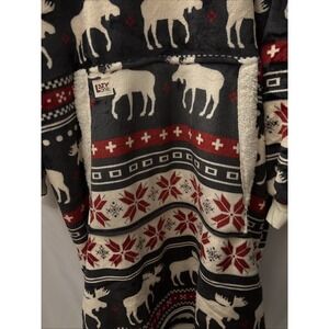 Lazy One Blanket Hoodie One Size Cabin Fair Isle Moose Print Unisex Fleece NWT