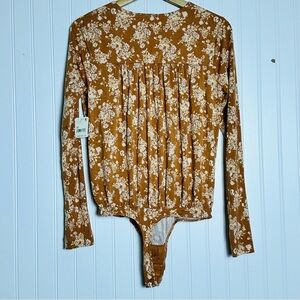 FREE PEOPLE Turnt Surplice Bodysuit in a copper floral print Medium NWT