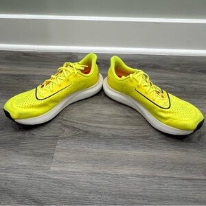 Vibrant neon yellow sneakers with bold New Balance logo. Lightweight and stylish design.