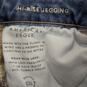 Discover ultimate comfort and style with these American Eagle Outfitters Hi Rise Jegging Stretch Jeans. Designed to hug your curves and flatter your figure, these jeans offer a smooth, streamlined silhouette that moves with you. The classic blue wash provides a versatile foundation for countless outfits, making them perfect for everyday wear. Elevate your casual look with these essential jeans.