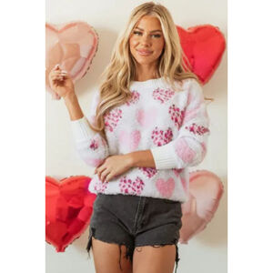 Pink and White Leopard Print Heart Pattern Women's Sweater Size Large NWOT