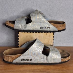 Birkenstock Arizona Women’s 7 EU 38 Narrow Shiny Python Blue Gold Slide Sandals