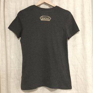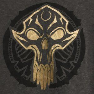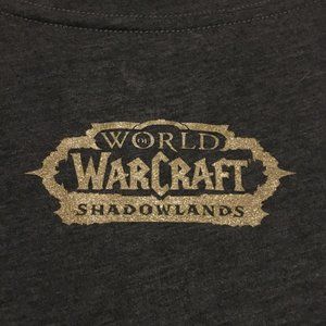 Excellent preowned condition, dark heathered grey, fitted tee featuring a Mawsworn skull illustration by Fanatics for Blizzard's World of Warcraft mmorpg. Love this shirt. Even if you're not a Warcraft fan, it's still very cool.