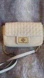 Stylish ivory quilted design. Gold-tone chain strap. Perfect for versatile wear.