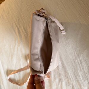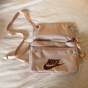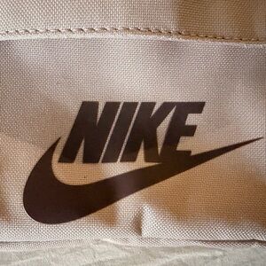 Nike crossbody bag in light brown/taupe. Features adjustable strap and bold logo with several pockets. Brand new without tags
