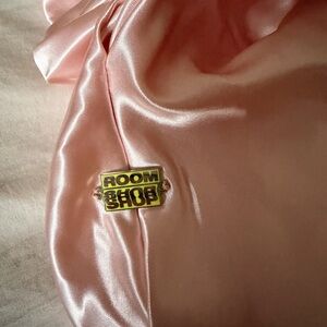 This elegant pink “Room Shop” satin bag is perfect for adding a touch of sophistication to any outfit. Its unique design and luxurious material make it a standout accessory. Brand new with tags.