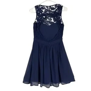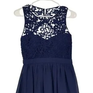 Lulus Navy Blue Lace Crochet Overlay Fit Flare Dress Womens Size S