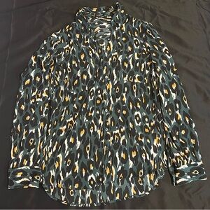 EXPRESS Forest Green Black and Gold Cheetah Button Up Shirt