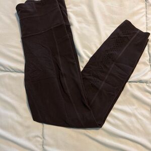 Elegant black leggings with detailed cutout pattern. Buttery soft Powervita compression fabric, like a gentle hug. Bonded side stash pockets can barely be seen or felt. 1 hidden waist pocket. Bonded hems.
