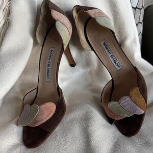 Manolo Blahnik Brown and Tan Open-Toe Heels