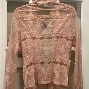 Chic lace blouse with intricate design. Perfect for layering or standalone wear. Adds elegance to any outfit.