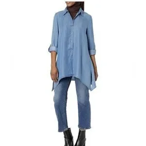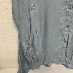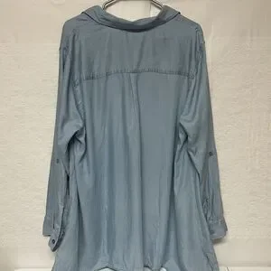 Zac & Rachel Women 2X Chambray Button Up Shirt Blue Tunic Roll Tab Sleeve Top