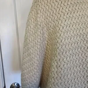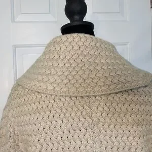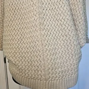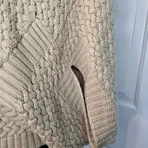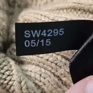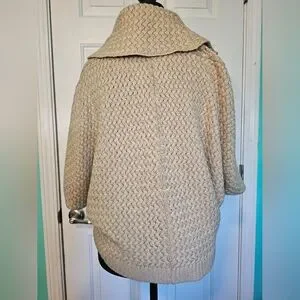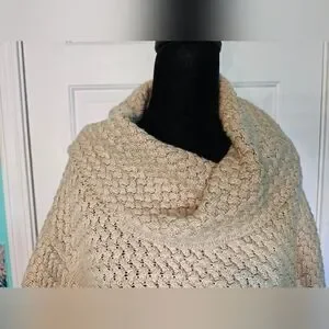 Stay warm and stylish with this cozy knit cowl neck sweater with intricately detailed basketweave pattern . Perfect for layering, this tan sweater adds a touch of elegance to any outfit with its classically stylish cowl neck style and batwing, short sleeves.