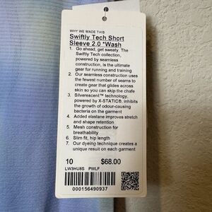 The Swiftly Tech Collection from lululemon is powered by seamless construction. Designed for running and training, this short-sleeve shirt is form-fitting and sits below the waistband for moderate coverage. Silverescent technology, powered by X-Static, inhibits the growth of odour-causing bacteria on the fabric. The shirt is a T-shirt.