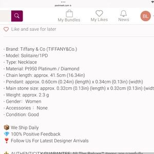 Tiffany & Co Necklace Solitaire 1PD Pt950 Platinum Diamond Ladies