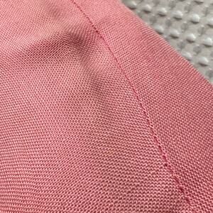 Original 1950s Mode O’Day dress in pink rayon blend. Styled in California. Features shaped lucite and rhinestone buttons, short sleeves, soft gathers at the bust, and curved patch pockets. Rear metal zipper.