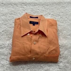 Alan Flusser Men's Linen Shirt Orange Button Up Short Sleeve VGC Sz L