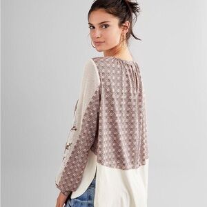 Gimmicks BKE Raw Edge Pieced Top in Creme Multi BOHO Peasant Prairie Sz S