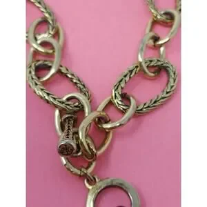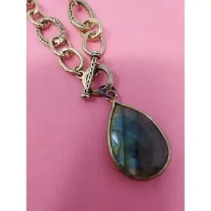 Labradorite Charm on Ralph Lauren Old Gold Chain Necklace VTG "RL" on Toggle End. Chain itself is 18". Labradorite is 1" tall, reversible and edged in gold or gold plate.