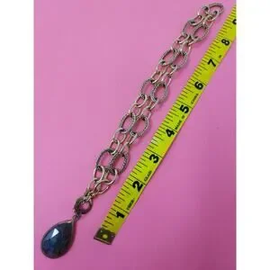 Labradorite Charm on Ralph Lauren Old Gold Chain Necklace VTG "RL" on Toggle End