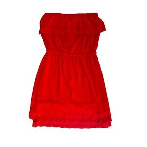 An elegant and versatile strapless dress by RW&CO., featuring a vibrant red hue that makes a statement at any occasion. The ruffled, smocked design adds a touch of sophistication, while the flattering mini length is perfect for weddings, cocktail parties, or a night out.