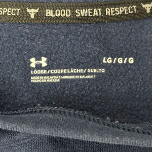 Under Armour Project Rock sweatshirt, in a deep navy hue, presents a compelling blend of comfort and iconic branding.