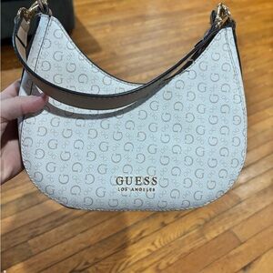 Chic Guess shoulder bag in cream. Features signature logo pattern. Ideal for everyday use.