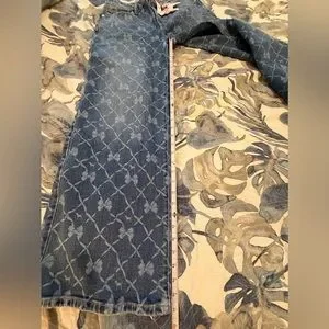 *NWT* VS PINK x LoveShackFancy Denim Baggy High Rise Jeans - bow print