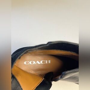 These gorgeous Coach Short boots have a very soft supple black leather. They have a side zip entry and pull loops on the back to help slide them on.