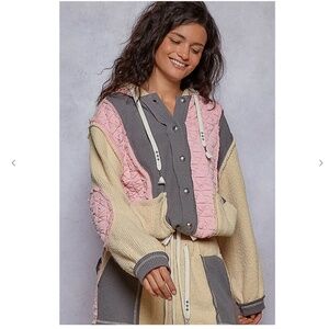 NWT POL Quilted Hoodie & Pants Set Pink/Grey