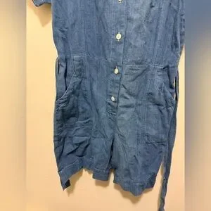 Product Features, Loose, soft lightweight romper in plant based indigo cotton in size XS.