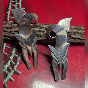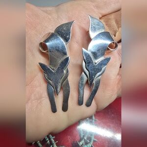 Vintage Taxco Signed Mexican Sterling Silver Fox Earrings