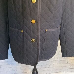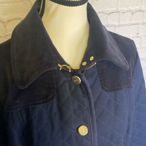 Jones New York Quilted equestrian Navy Jacket Elbow Pads Corduroy Collar Sz S