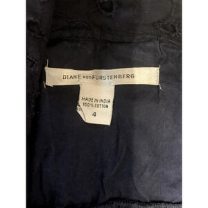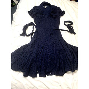 Diane Von Furstenberg Womens Short Sleeve Eyelet Wrap Dress Navy Cotton Size 4