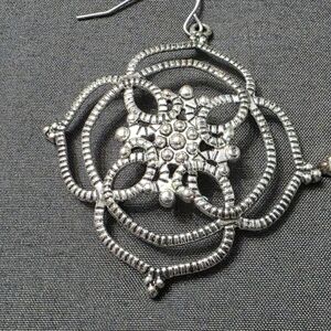 Silver Tone, Floral Bohemian Style, Vintage Dangle Earrings - Item 509